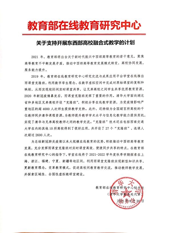 我校为响应教育部在线教育研究中心关于支持开展东西部高校融合式教学的计划促进高校间教育教学交流,推动教师教学发展,并探索区域性、全国性虚拟教研室建设。日前,我校通过学校教务处遴选推荐yl6776永利集团魏仁兴教授通过学堂在线“雨课堂克隆班”技术将《会展概论》课堂活动视频与教学课件首次实时共享给昌吉学院经济管理系会展经济与管理专业58名师生。 “雨课堂克隆班”是教育部在线教育研究中心研究交流与成果应用平台“学堂在线”推出的新型跨校智慧教学解决方案,利用数字孪生理念,在数字虚拟空间完成对原始课堂的复制和映射,从而实现校际间实时课堂共享。 魏仁兴教授通过雨课堂克隆班介绍《会展概论》这门课程的学科基础、会展起源及发展简史、会展及主题活动形式、会展产业链以及会展在经济活动中的作用、影响,分享最新的会展项目表现方式,并进行弹幕、投稿等课堂互动,引发同学们从企业和个人角度出发,思考面对数字经济发展,如何变危机为契机。魏仁兴院长老师鼓励同学们在科技进步日新月异、新知识新技术层出不穷的时代,树立终身学习的理念,不断提高学习能力,顺应数字经济发展趋势。 同学们纷纷表示,能与新疆昌吉学院同学同步聆听同一堂课是很特别的体验,学习动力更足。智能化课堂技术的使用也带来了更多的学习机会和更丰富的课程体验。 在课堂的另一端昌吉学院的老师正组织同学们在课堂里同步观看魏仁兴教授的《会展概论》课堂直播,通过课件、音、视频材料、参与教学互动同步,同学们格外珍惜来之不易的教学资源,都在全神关注聆听,课后老师也组织同学们一起针对同步课堂教学的讨论。 为推动东西部教育协作,共享优质课程资源,我校与昌吉学院开展远程融合式直播教学合作,通过“互联网+教育”模式实现新型知识共享,有效促进两校教育资源优势互补。前期,在校领导的关心和教务处的大力支持下,高效完成了课程团队组建、教学资源配套、教学设施支持、教学任务对接等系列准备工作。 接下来,双方将在此次共享课堂基础上,以课程(群)教学、专业建设、教学研究改革、科研实验、现代产业学院等为主题深化永利集团,着力增强两校教师深度融合现代信息技术与教育教学的能力,共同建设虚拟教研室,携手推进新型基层教学,打造东西部高校教师教学资源发展共同体。