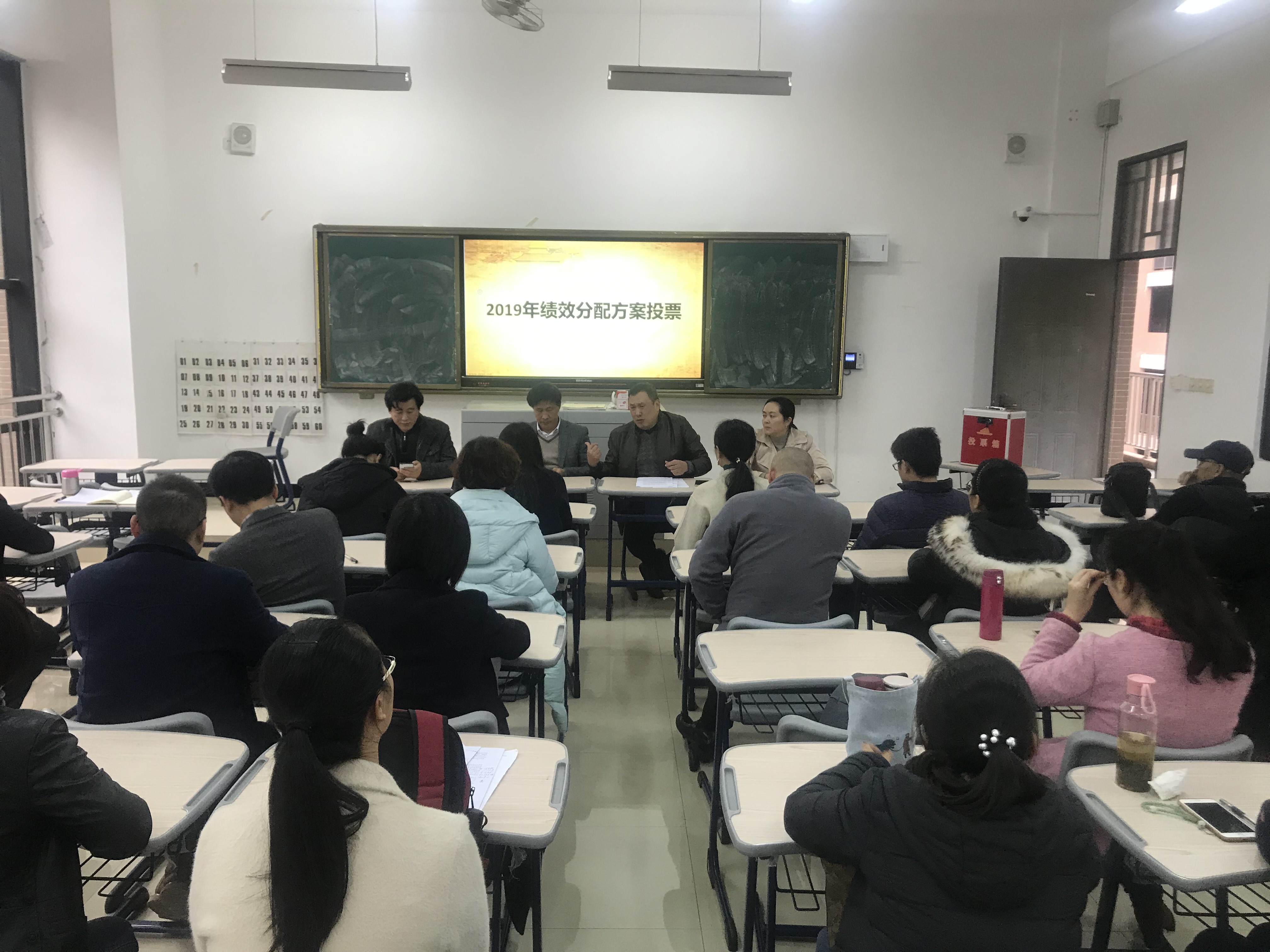 会上,院长魏仁兴代表学院领导班子作了工作报告。报告回顾了2019年我院在教学科研、人才引进、人才培养等方面取得的成绩,强调了我院2020年发展目标,提出了引育高端人才、申请本科专业等一系列发展举措。院党委书记郭海云就我院《yl6776永利集团年终一次性绩效奖励分配方案》作了说明,并再次征求与会老师意见。随后,全体与会人员对绩效奖励方案进行无记名投票,赞同票数超过总票数三分之二,大会通过该绩效奖励方案。