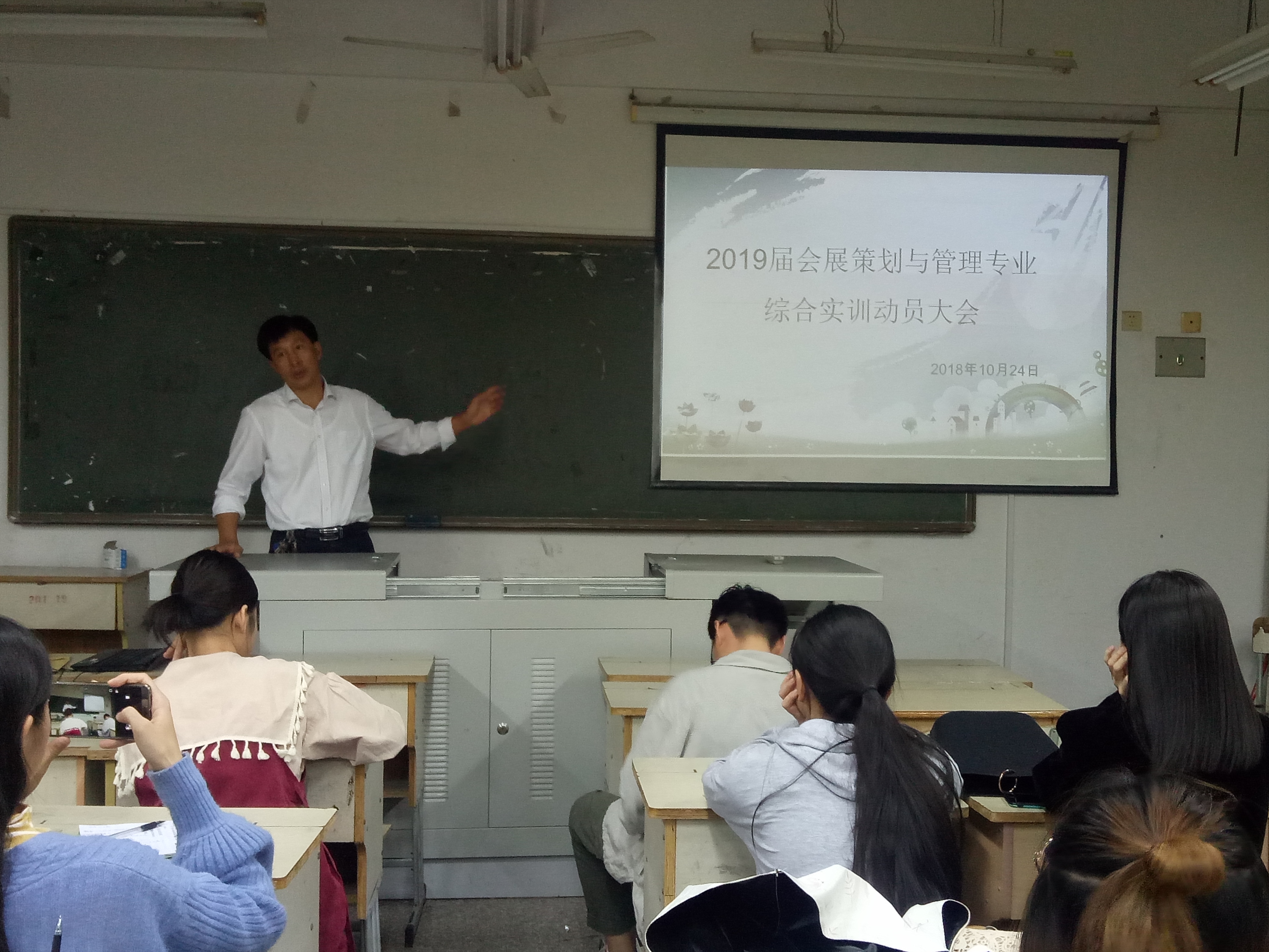 2018年10月24日晚7:30管理工程系在鼓楼校区红楼103教室召开2019届会展专业毕业生实习就业动员大会,会议由管理工程系教研室主任吴彩莲老师牵头主持,邀请管理工程系主任魏仁兴教授参与会议并指导,本会目的是为了在学生出校门前进行思想动员,鼓励同学们大胆走出校园,明确自身规划与社会诉求。