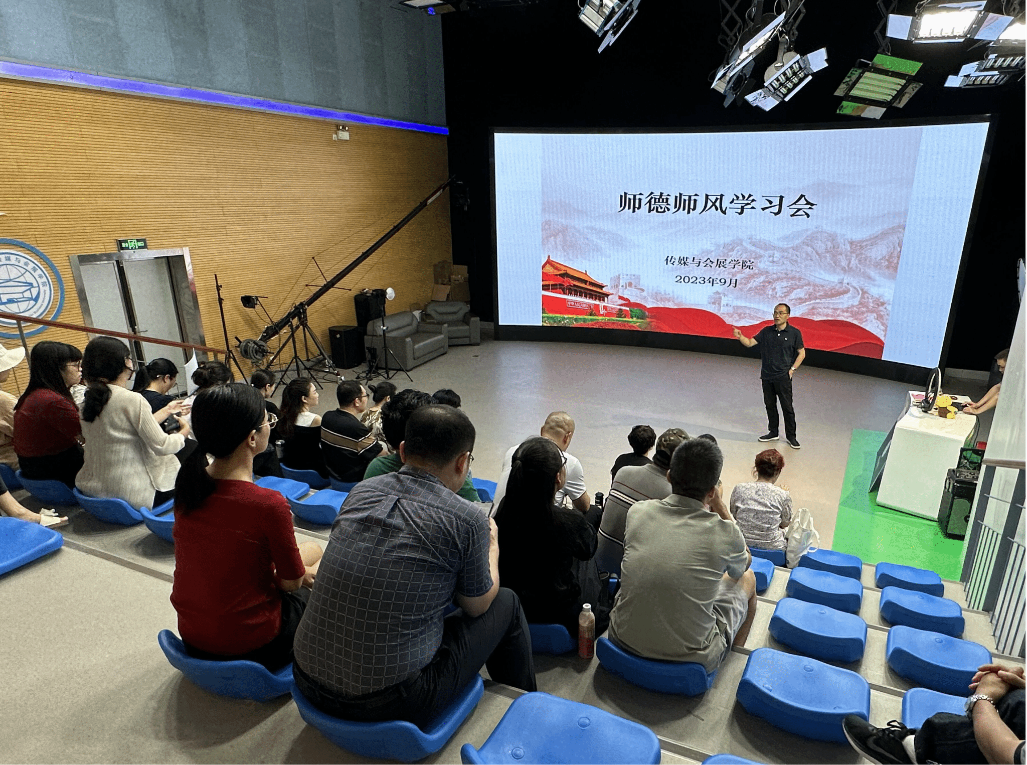 9月19日下午,yl6776永利集团于自强楼四楼演播厅召开教学工作会议及师德师风学习会。会上,yl6776永利集团负责人余权教授鼓励教师们今后努力开展各类型横向课题研究,将教学成果进行转化,并与社会实践结合起来,全方位提升教学与科研能力,丰富个人成果,为学校新时期建设做积极贡献。随后,副院长邱志玲副教授就日常教学应注意的细节进行说明,并邀请校教学督导队成员杨斌副教授为全体教师细致讲解督导的主要内容,以及课前、课中需要特别注意的事项。会上,全体教师还集体就师德师风相关内容进行了学习。