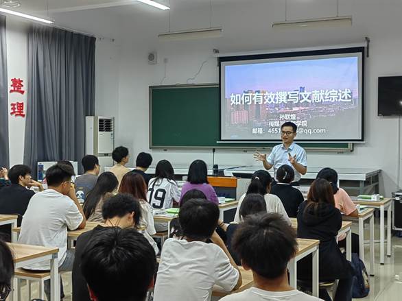 会议伊始,孙联煌老师从文献综述的含义、特点和作用为大家讲解“什么是文献综述”;接着,将“文献综述写作的基础”分为三步进行分析,分别为“筛选文献”、“粗度文献”、“精读文献”;然后,老师为大家介绍了“简介式”、“动态性”、“成就性”和“争鸣性”四大类型;最后,老师分别从我们院部分的专业工业工程专业、会展经济与管理等案例给大家介绍文献综述的格式。