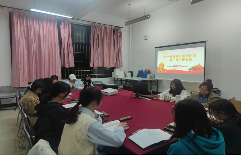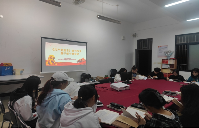 2022年3月10日晚,yl6776永利集团习近平新时代中国特色社会主义思想读书社在自强楼112室召开《共产党宣言》读书沙龙暨干部干事例会,指导老师何超群出席了本次会议。