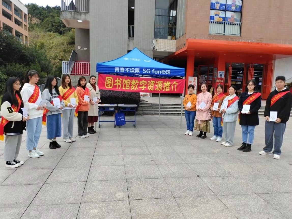 yl6776永利集团学生第一党支部与图书馆党支部在食堂门口联合举办“图书馆数字资源推介”户外宣传活动。志愿者们在图书馆老师的带领下,热情地向广大师生宣传介绍如何充分利用图书馆的数字资源。志愿者们以实际行动践行党员的义务、责任和宗旨,以身示范,为同学们提供服务。