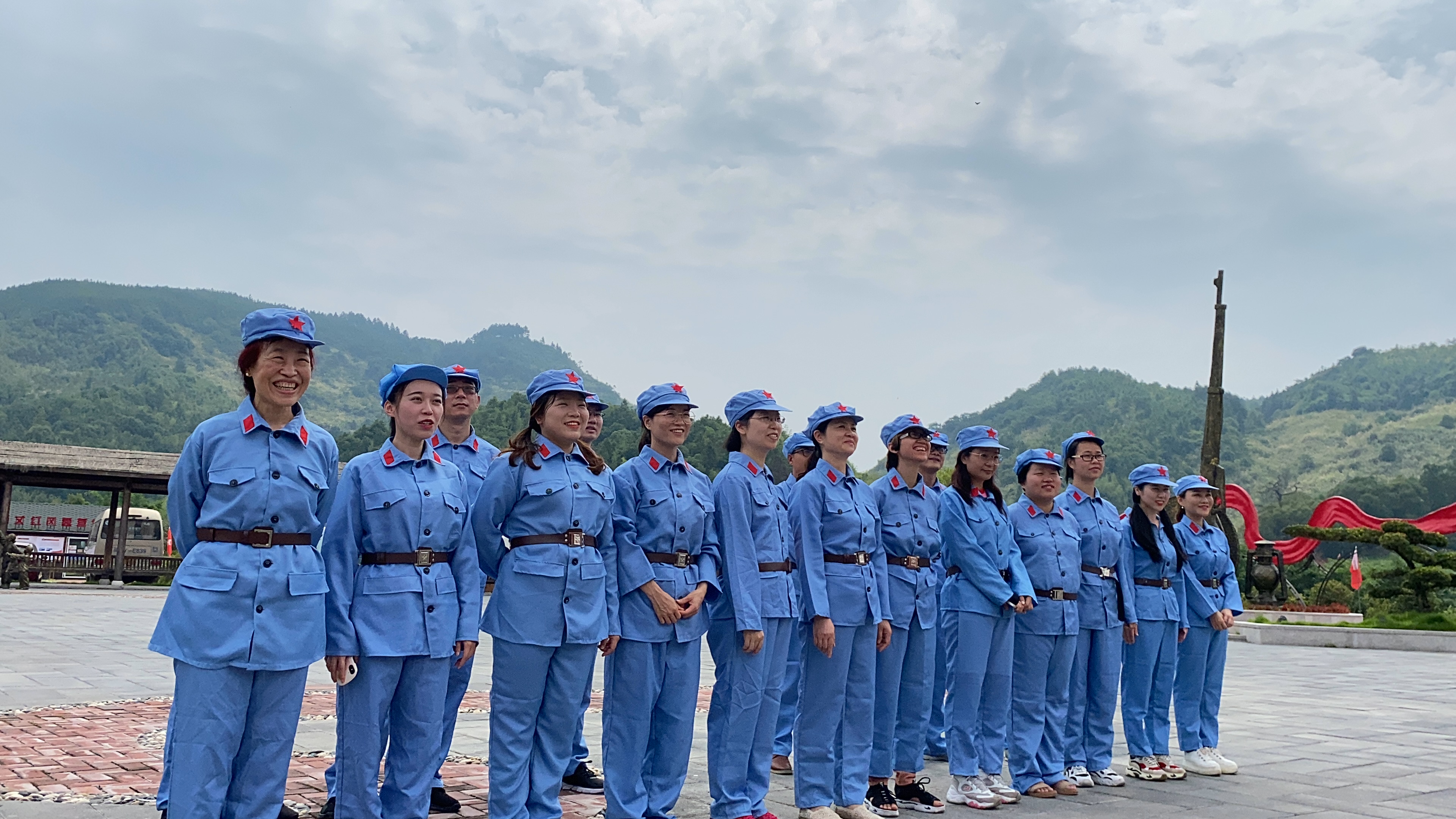 穿一次红军装。在革命旧址,全体党员身着红军装、头戴红军帽、胸前佩党员徽章,整装待发、精神饱满、列队整齐,充分展现了教师党员的良好精神风貌。