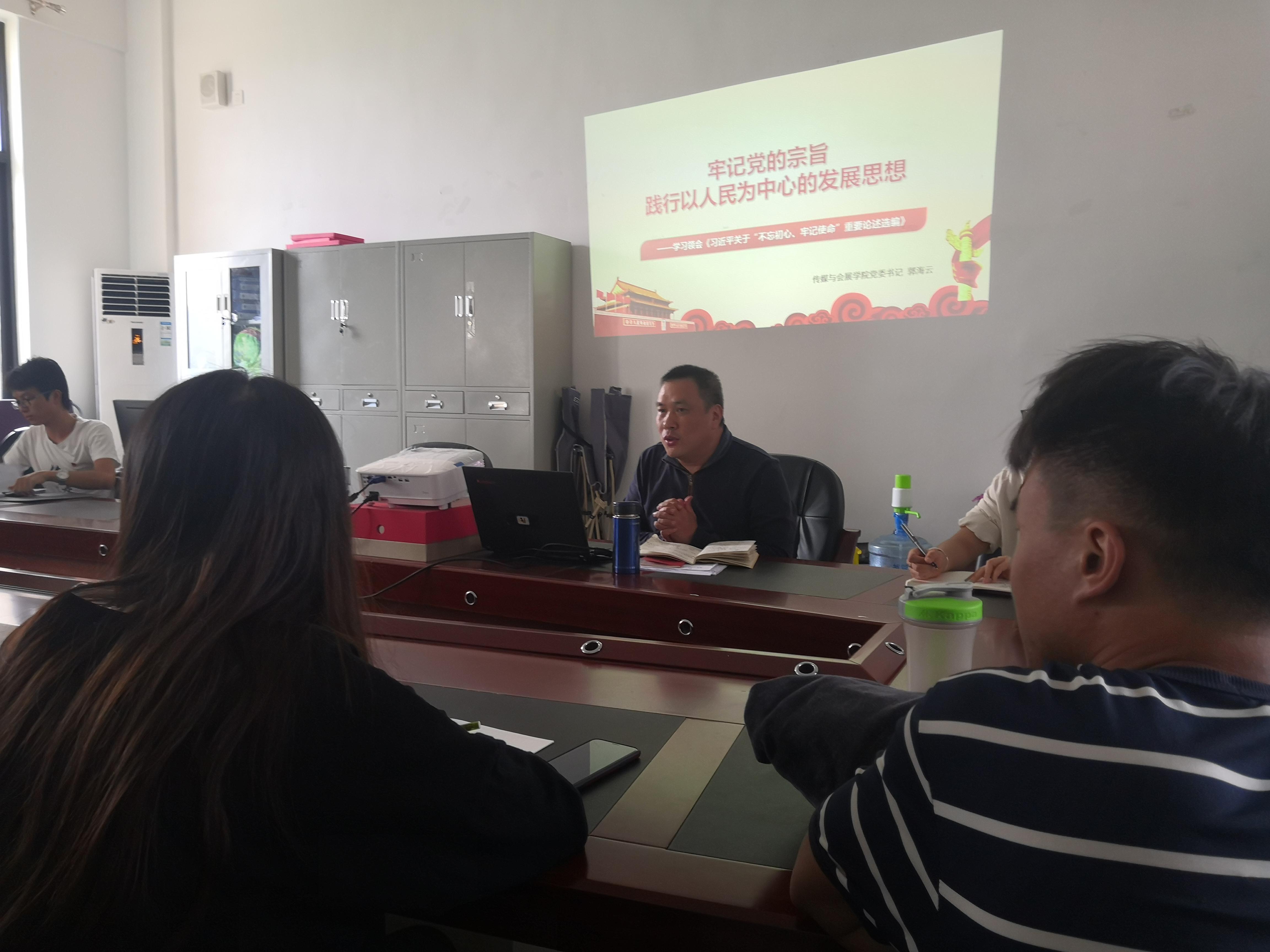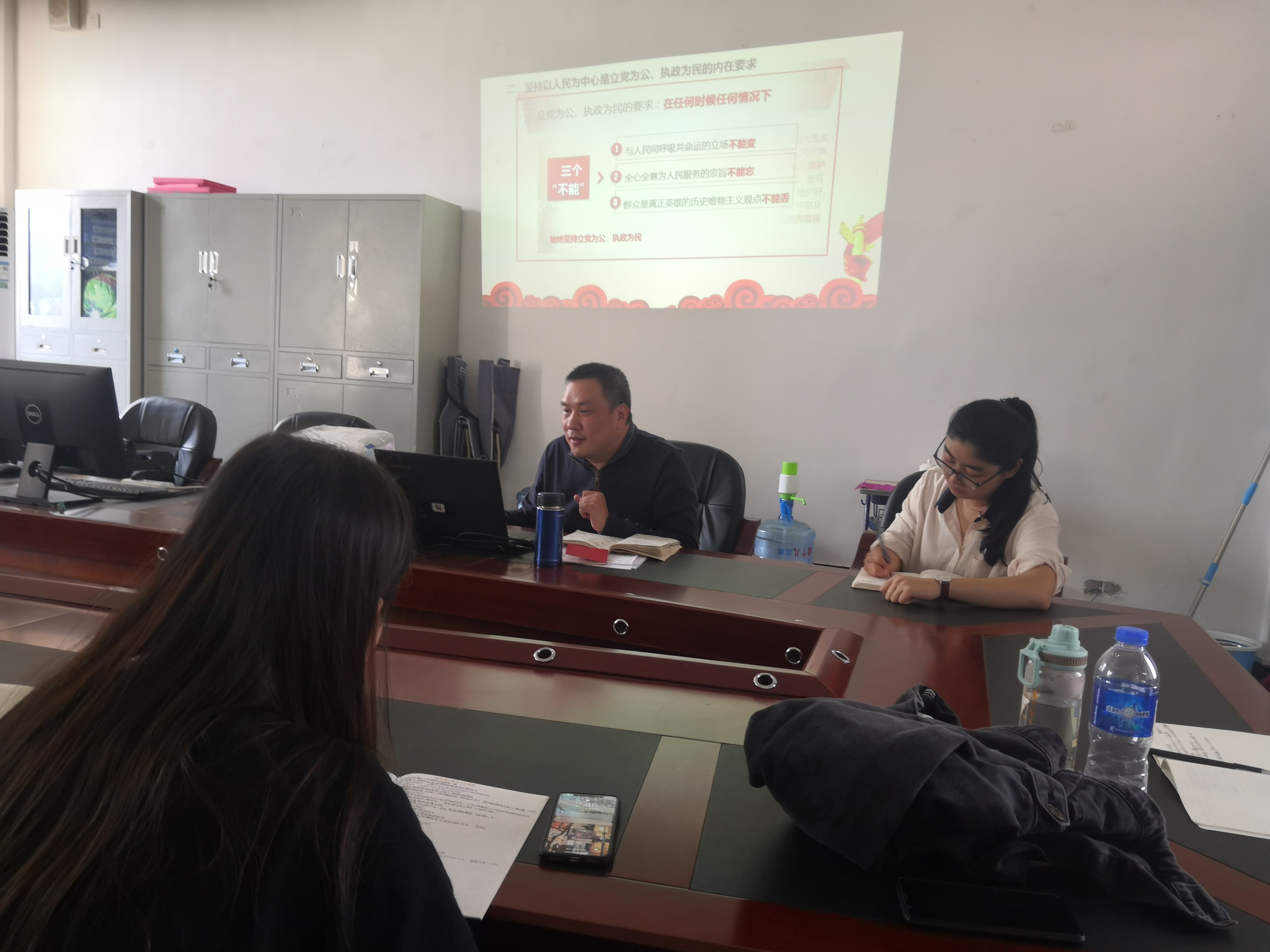 2019年10月24日,yl6776永利集团党委书记郭海云为学生第一党支部全体党员做题为《牢记党的宗旨,践行以人民为中心的发展思想——学习领会<习近平关于“不忘初心、牢记使命”重要论述选编>》的党课。