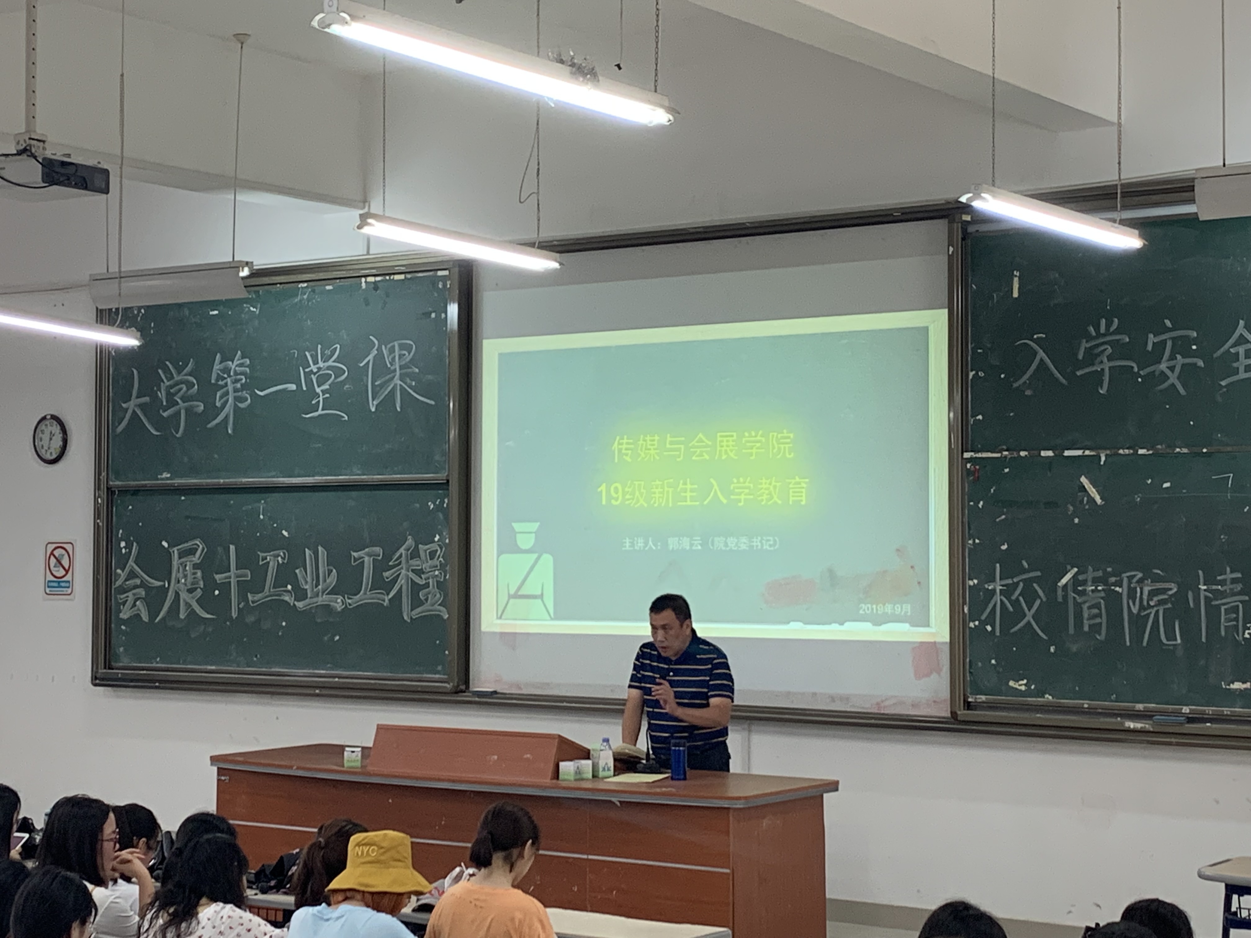 9月9日上午10点,yl6776永利集团党委书记郭海云、院党委副书记张雄伟、副院长邱志玲分别在诚信楼大阶梯教室1、2、3给刚入学的2019级新生上开学第一堂课。本次课堂教育围绕“中美贸易战”、“校情院情介绍”、“入学安全教育”主题,为全院2019新生讲授了生动的一课。