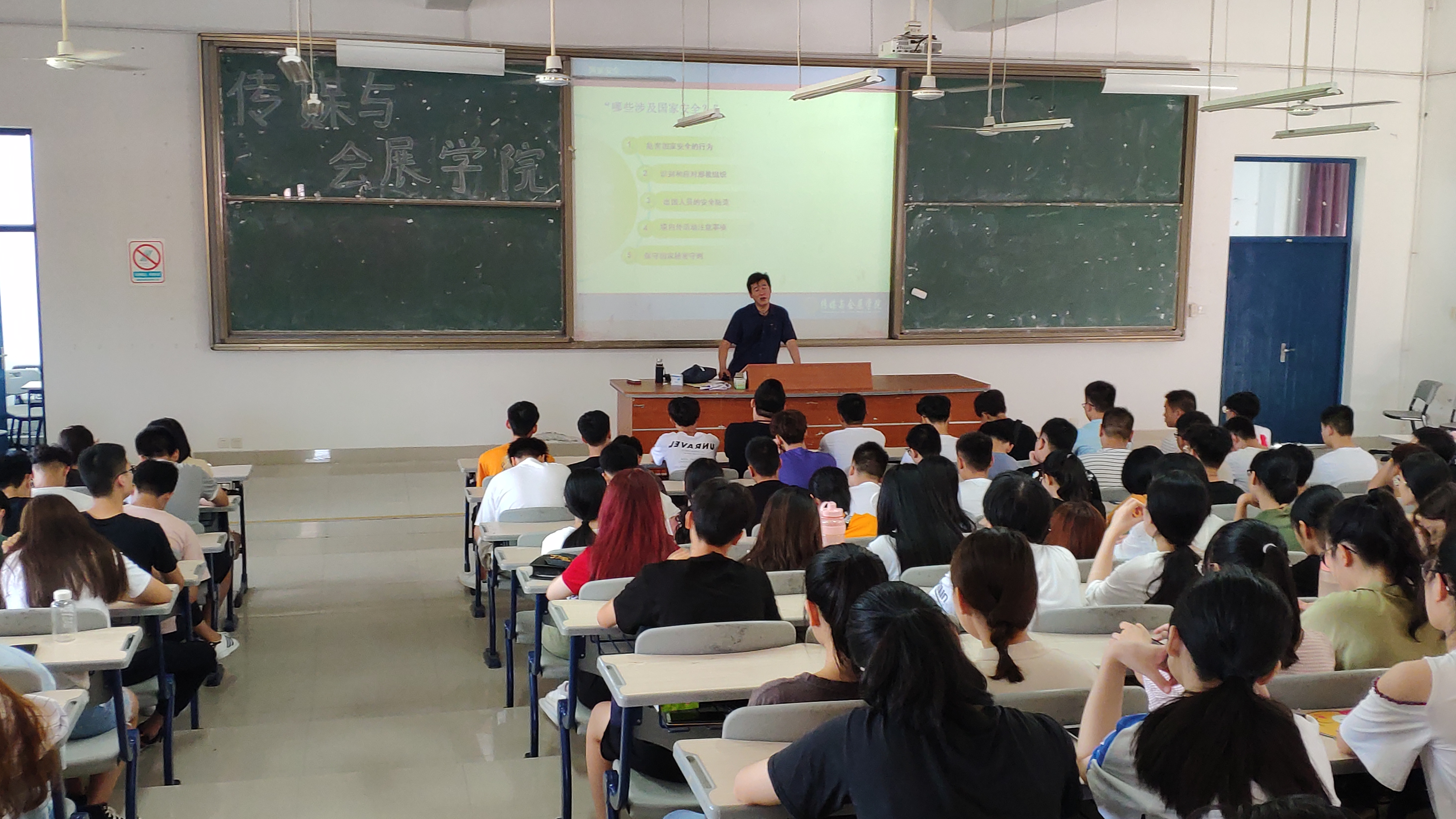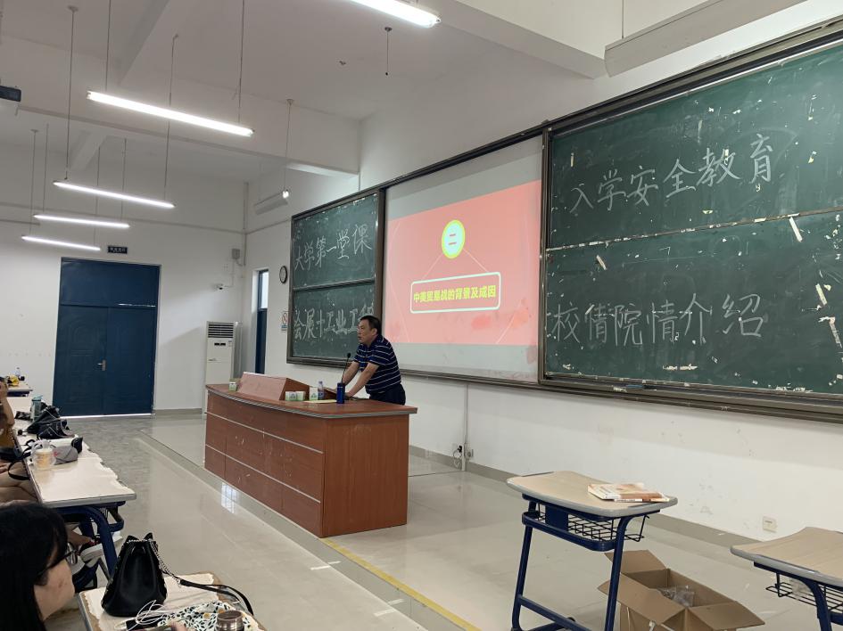 学院领导首先以如何正确看待中美贸易战为切入点,从中美贸易战的背景、贸易战对中国的影响等方面为2019级新生讲授了中美贸易战的实质,引导我们同学们正确看待中美贸易战,增强爱国主义情感,我们的党和国家已经做好了充分准备,能做的和应该做的就是坚定自己的步伐,砥砺奋斗。接着,学院领导介绍了学校和学院的基本情况,让同学们对校情院情有了更加清晰的认识。院党委书记郭海云指出,作为yl6776永利集团的一份子,要以学院为荣,规划未来的学习生活,不虚度年华,学好本领。最后,学院领导针对入学后的安全问题,从预防交通事故、防火、防溺水、防食物中毒、防流感、防拐、防诈骗、防暴力、防意外伤害、防校园欺凌等方面,结合我院的发生过的案例,警示了2019级新生要时刻树立自我保护的安全意识。