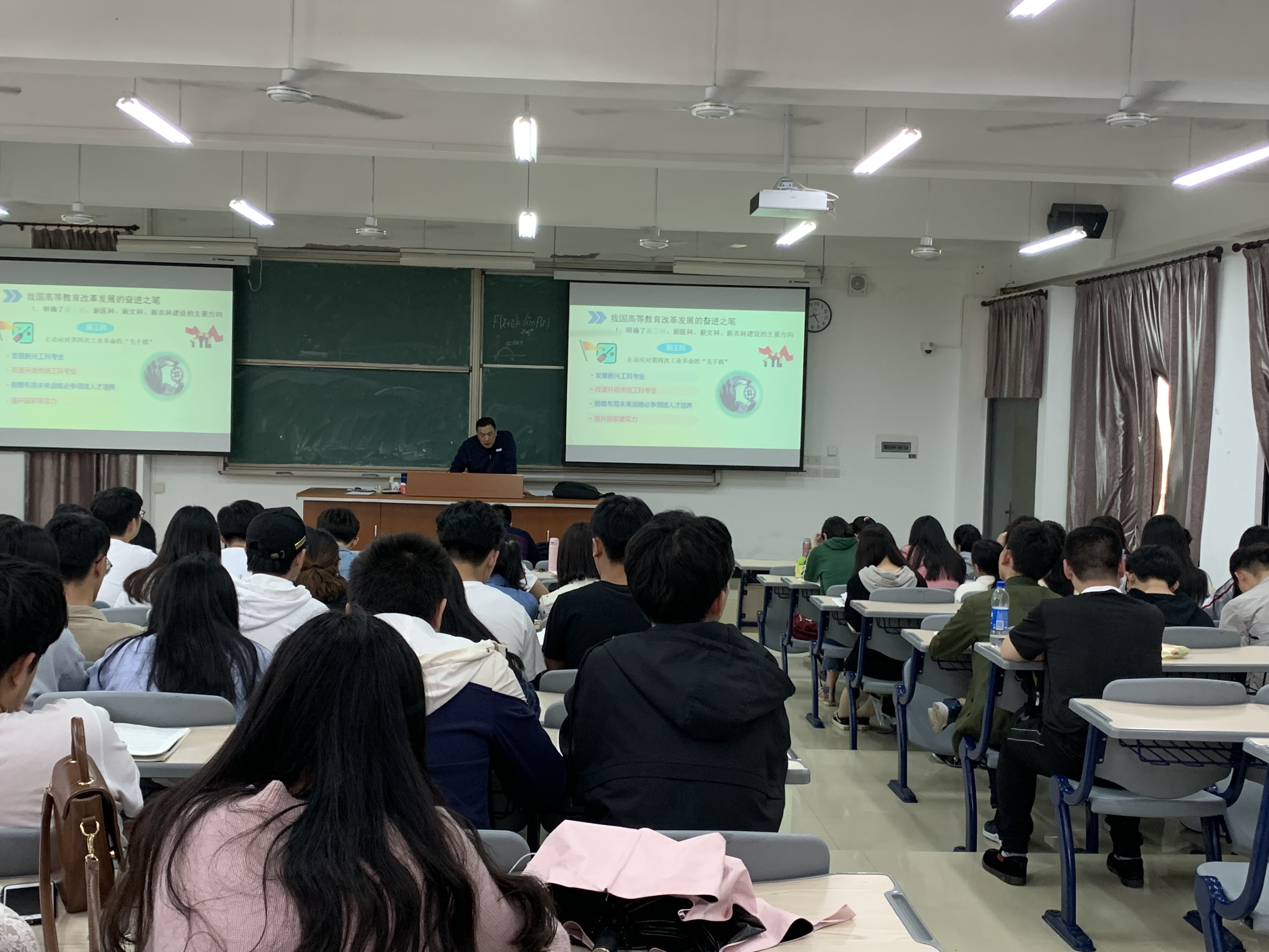 为学生讲解形势与政策课程——“高等教育改革发展趋势”