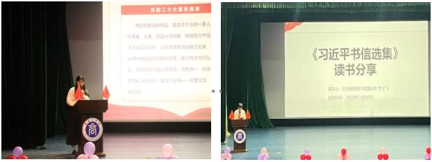 学生党员与读书社社员走上讲台,开展党的二十大理论宣讲、红色书籍推介、社会实践分享,以朋辈独有的亲和力与感染力,带领全场同学感悟初心使命,赓续红色血脉,传承优良传统。