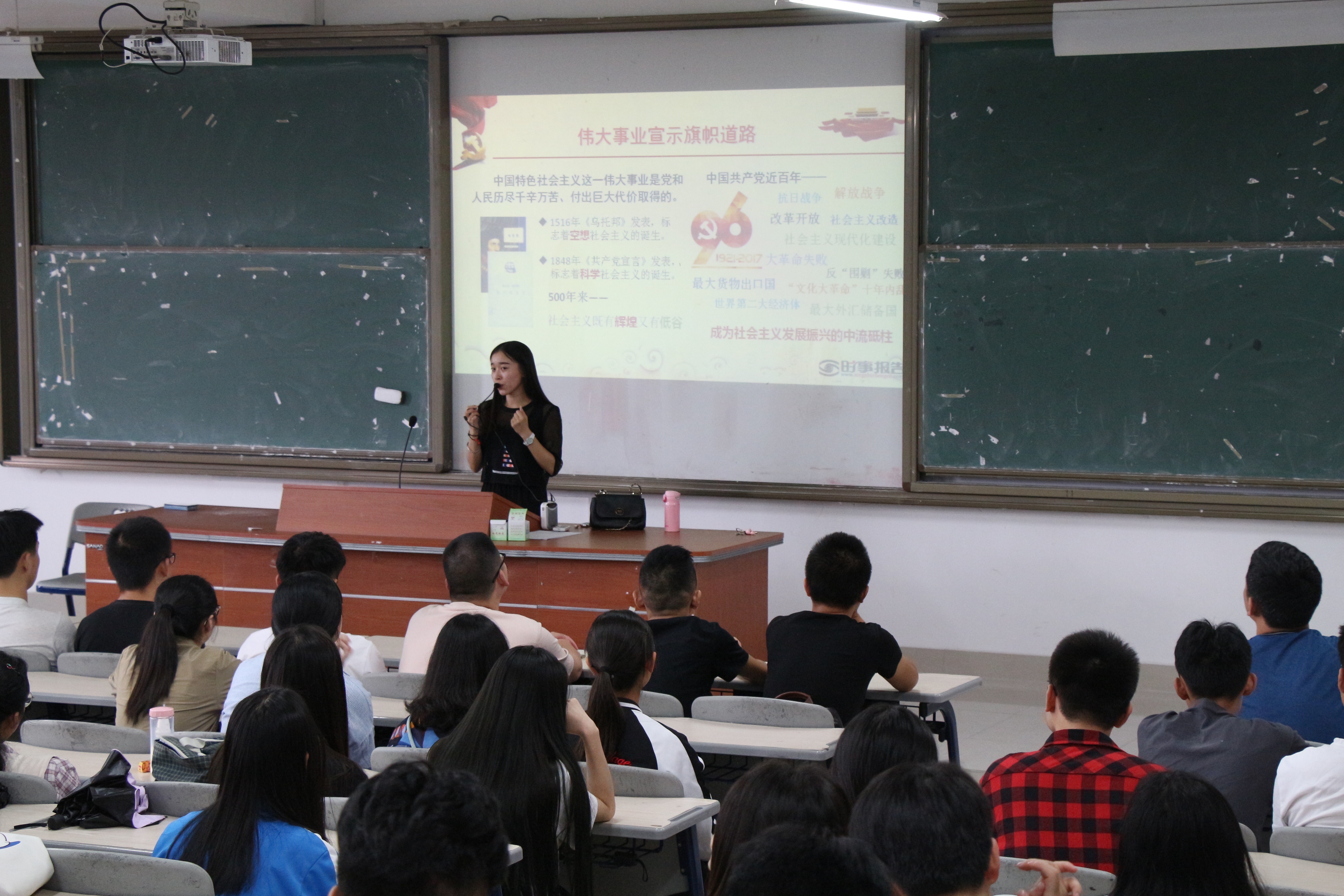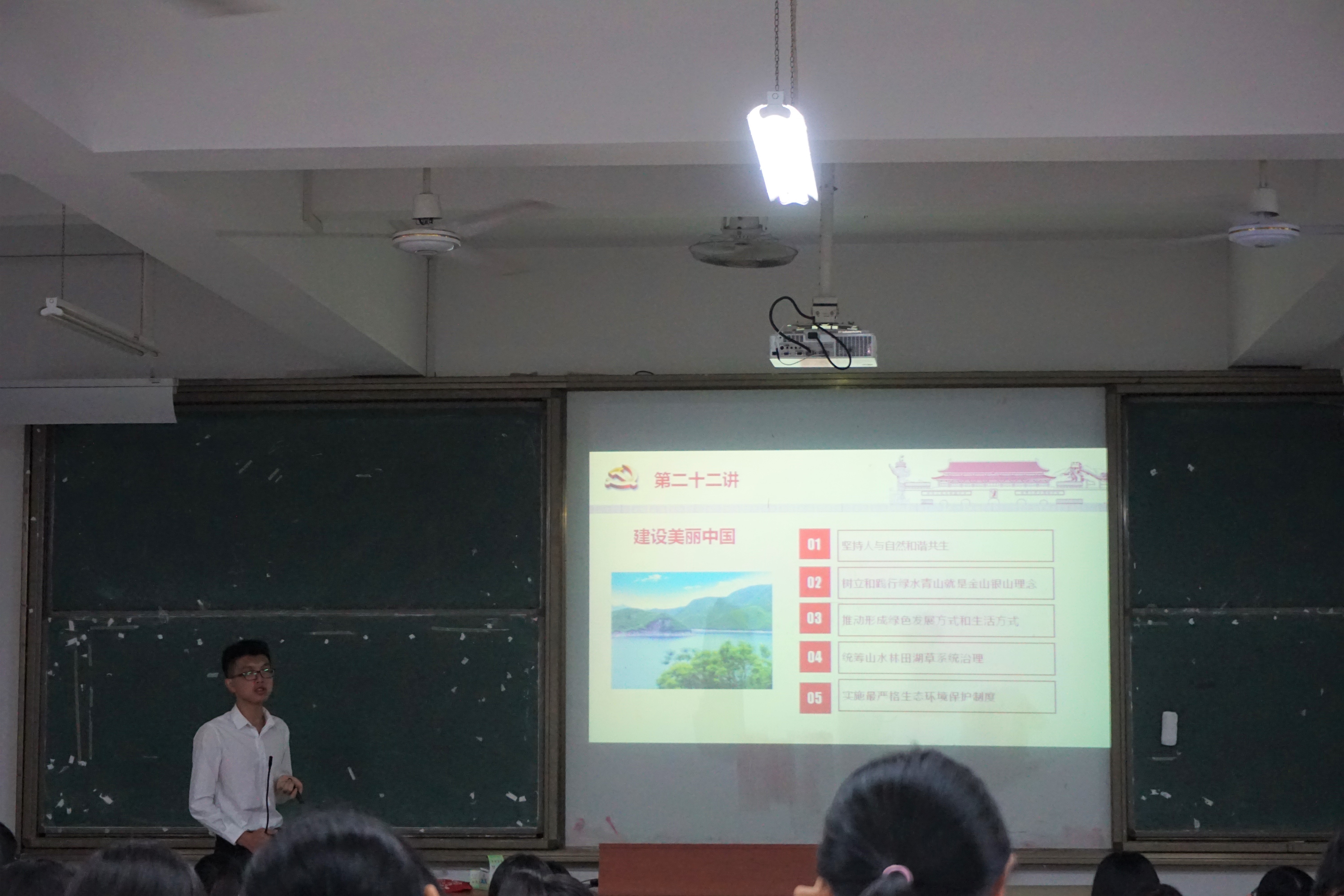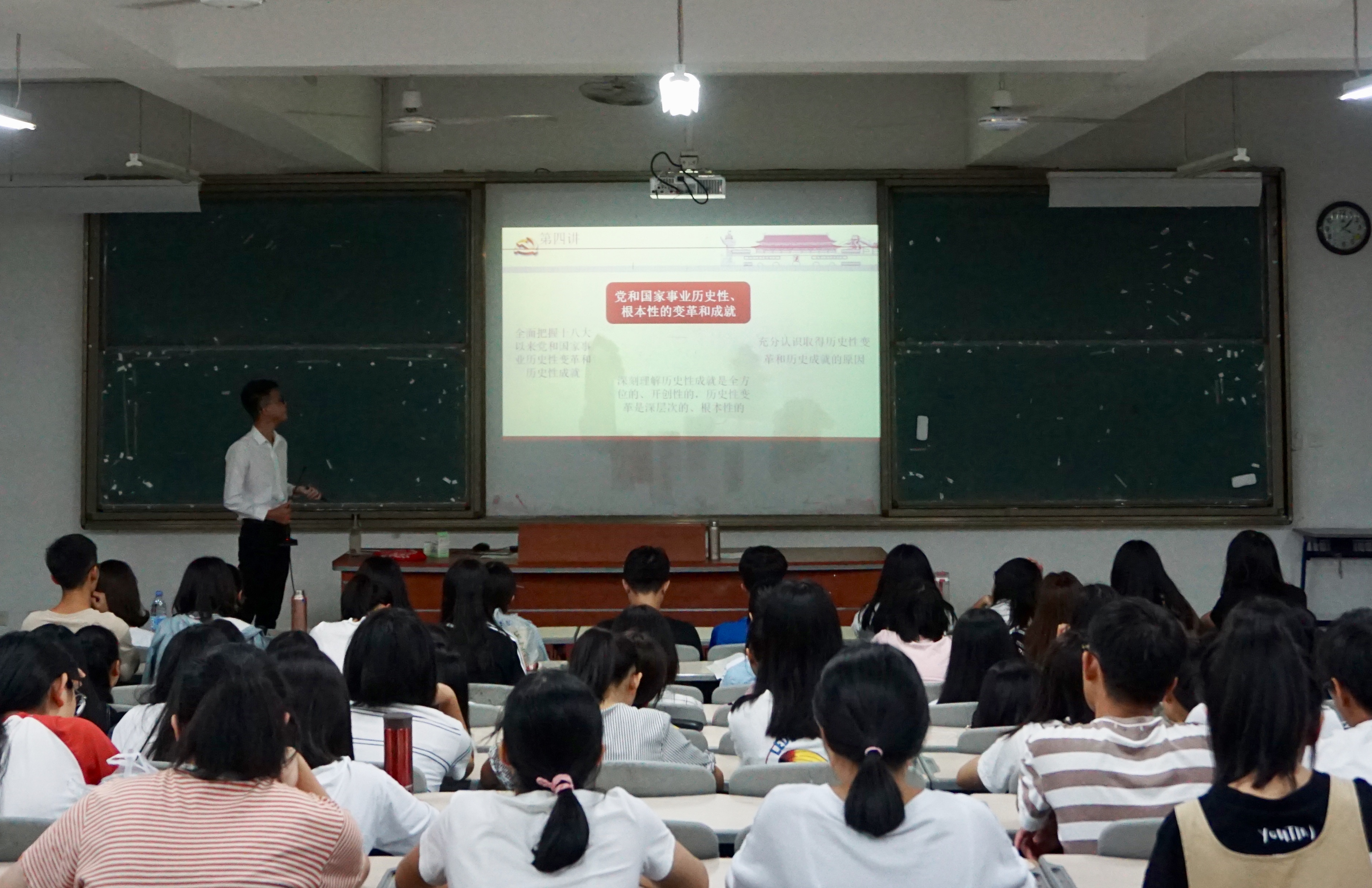 9月26日晚,管理工程系党建助理团在连江校区诚信楼大阶一教室开展学习新思想 “大宣讲”活动。本次宣讲以“《习近平新时代中国特色社会主义思想三十讲》导读”为主题,由我系2016级会展与经济管理班学生、福建省第二季大学生学习马克思主义理论知识竞赛本科组冠军苏金楼同学,面向管理工程系2018级会展经济与管理专业的新生进行宣讲。