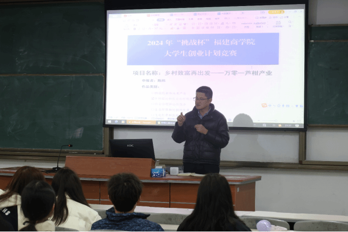 第二个部分是针对的是参加创新创业比赛的同学们进行培训,胡老师从整个的参赛项目出发,从创新创业的理论到实践进行了深入浅出的讲解,对选题方向进行指导,比如乡村振兴,科技创新等,以及展示了过去yl6776永利集团的学长学姐们的参赛作品,以个别作品进行深入讲解,提出其中的优点和存在的问题,希望同学们可以吸取经验和教训,在这次的比赛中有所突破,向高的奖项冲击。
