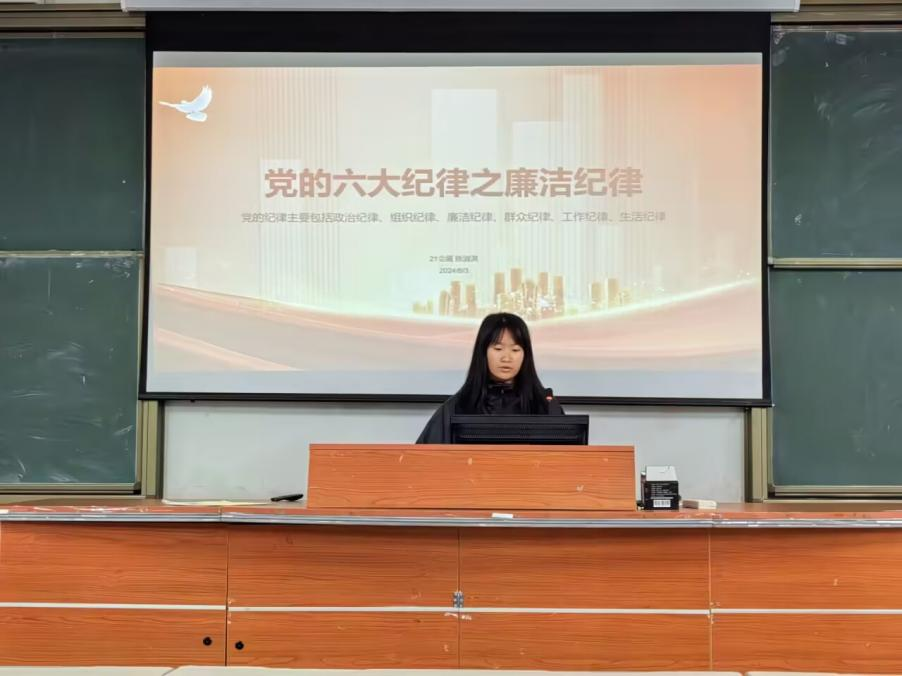 会上,陈淑淇同学为大家带来了一场关于党的廉洁纪律的深刻阐述。她详细解读了党的廉洁纪律的内涵及其深远意义,着重强调了廉洁自律在个体成长和学院发展中所扮演的关键角色,结合诸多鲜活的案例与实例,对廉洁纪律的具体内容和各项要求进行了详尽而细致的剖析,使得在场的每一位同志都能对廉洁纪律产生更为清晰且深刻的认识。
