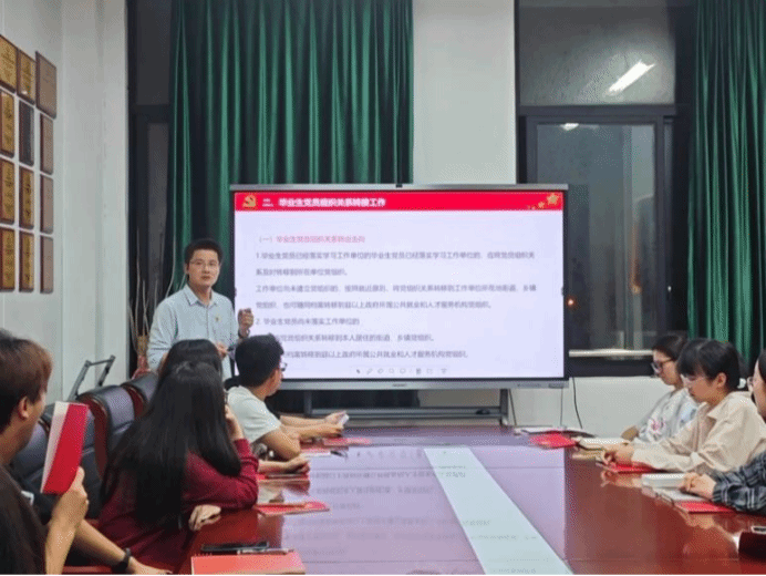 5月22日,我院学生第一党支部在自强楼422召开毕业生党员离校教育暨党纪学习教育专题党课。活动旨在加强毕业生党员的党性教育,引导他们在即将踏上新征程之际,牢记党员身份,不忘初心,继续为党和人民的事业贡献力量。