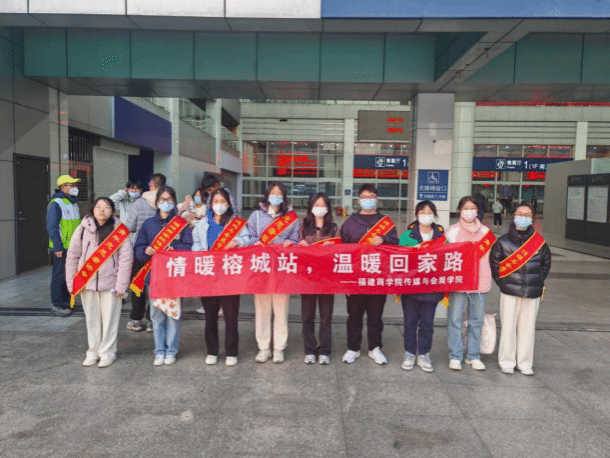 为展现当代大学生的精神风貌与社会担当,1月19日至21日,我院学生在福州飞飞鱼志愿组织的带领下,于福州火车站及周边区域精心开展了“情暖榕城站,温暖回家路”社会实践活动。此次活动旨在通过一系列丰富多样的志愿服务,为不同群体送去温暖与关怀,传递正能量。实践队活动共开展三天。第一天,学院学生在福州北站服务旅客:在候车大厅设咨询台,耐心解答车次、路线等问题;在进出站口协助维持秩序;主动帮行动不便的旅客搬运行李,贴心服务获旅客称赞,让出行更便捷愉快;第二天,实践队前往洋四社区参与“三清三关”活动。志愿者分组行动,一组发放宣传册、讲解环保知识与社区管理规范,另一组清理垃圾、杂草,拆除违章;第三天,实践队到圆梦养老院慰问老人。志愿者分组探访行动不便的老人,交流生活、分享校园故事、陪老人散步、协助护工整理房间。