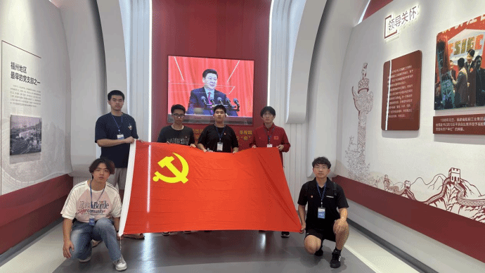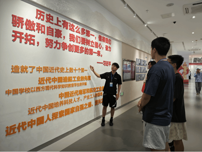 活动伊始,党支部带领同学们走进中国船政文化博物馆与船政时空隧道。在博物馆里,珍贵史料与复原场景,党支部一同学习了船政从诞生到推动中国近代化进程的艰辛探索,“千年变局”展厅中,鸦片战争后国门洞开的历史冲击,让同学们深刻理解船政兴学、造船强军的时代意义;船政时空隧道以多媒体形式,串联起昙石山文化起源至当代航海科技突破,跨越时空的呈现,让历史与现实交融,同学们纷纷驻足,在历史长卷中感悟先辈“爱国、科学、创新、图强”的船政精神。