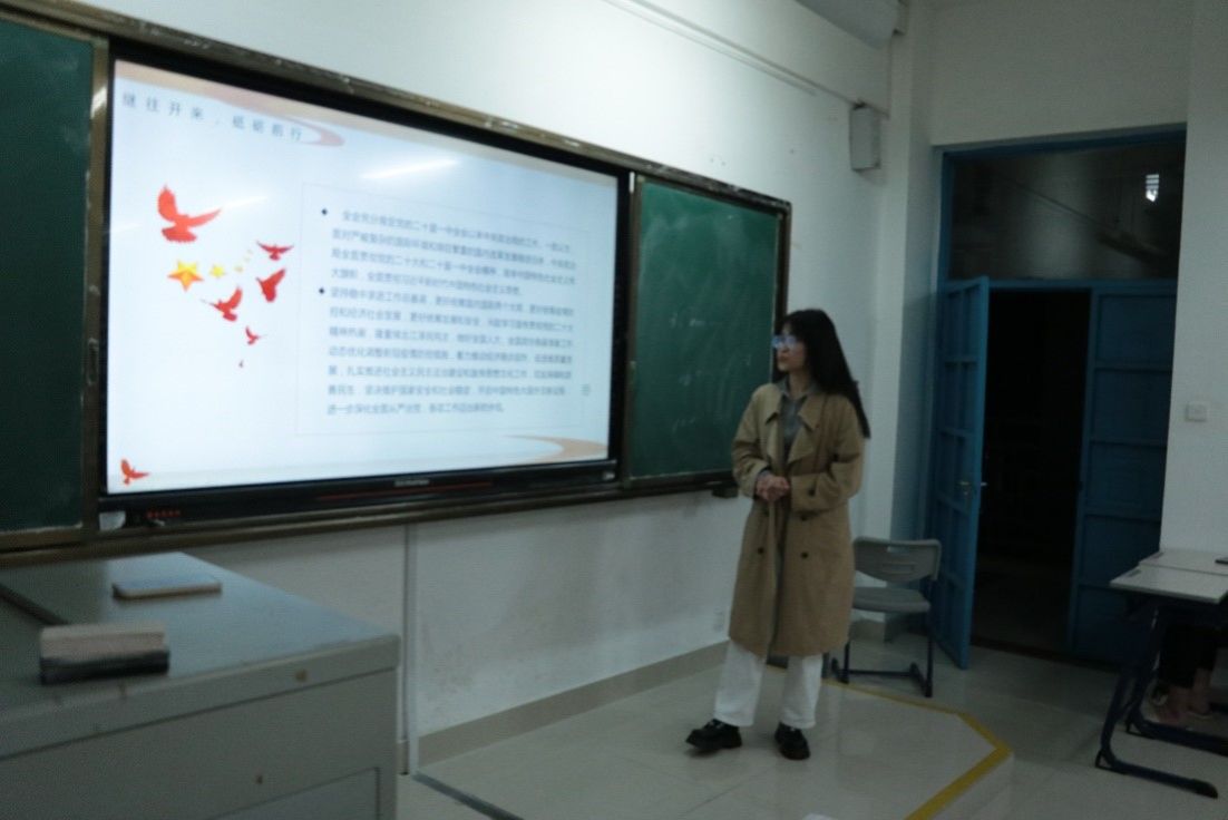 为加深理解有关党的二十大和二十届一中全会精神重要指示精神,切实增强学习贯彻自觉性坚定性,3月22日晚,yl6776永利集团于诚信楼211教室开展《学习中国共产党第二十届中央委员会第二次全体会议公报》主题宣讲活动,由何梦珊同学和王孔泷同学进行宣讲。