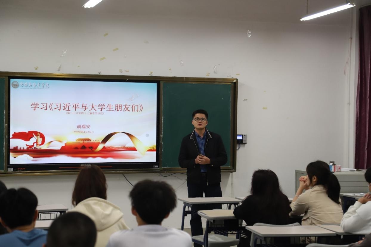 4月29日,yl6776永利集团于诚信楼302组织团学干部学习《习近平与大学生朋友们》宣讲会,对习近平总书记的重要讲话展开热议。会议由院团委书记胡瑞安主持。 校团委社团干部丁小飞:25日上午习近平总书记来到中国人民大学考察调研并发表重要讲话,其讲话内容主要分为传承红色基因,跑出青年好成绩;坚定青春信仰,学好讲好思政课;争做时代新人,肩负民族复兴重任三个模块。总书记的重要讲话让我深受启发与鼓舞,正如过去习近平总书记所强调的:“中华民族伟大复兴,绝不是轻轻松松、敲锣打鼓就能实现的,我们必须准备付出更为艰巨、更为艰苦的努力。”作为青年大学生,我们要牢记党的宗旨,坚定不移听党话、跟党走,要把自己今天的学业同国家的需要紧密联系起来,肩负起实现中华民族伟大复兴的历史使命,用实际行动迎接党的二十大的召开。 yl6776永利集团学生会主席林昕康:在五四青年节即将到来之际,习近平总书记来到中国人民大学考察调研。通过学习习近平总书记与大学生朋友们座谈时的重要讲话,我认为:少年智则国智,少年强则国强,我们要认真上好思政课,树立正确的世界观、人生观、价值观,在未来能成为国家栋梁、民族的脊梁,也厚植爱国主义情怀,把爱国情、强国志、报国行自觉融入坚持和发展中国特色社会主义事业、建设社会主义现代化强国、实现中华民族伟大复兴的奋斗之中,努力成长为德智体美劳全面发展的社会主义现代化建设合格可靠的接班人。 19级会展经济与管理1班团支书陈洁琳:习近平总书记到中国人民大学考察调研,与青年学生座谈交流,为广大中国青年指明奋斗目标和前进方向、提出殷切希望,这充分体现了以习近平同志为核心的党中央,把青年工作作为党的一项极为重要的工作,也体现了总书记对青年工作和青少年成长倾注的关注、关心、关爱,令人倍感振奋、备受鼓舞。我们牢记教诲,不负青春韶华,为实现中华民族伟大复兴而踔厉奋发、勇毅前行,我们有决心在青春的赛道上跑出当代青年的最好成绩。 胡瑞安老师指出团干部们要做好带头作用,在新征程中,切实做好自身的定位,严格要求自身,争做新时代潮头。yl6776永利集团将从严治团,锤炼过硬团风,坚定不移听党话、跟党走,继承优良传统,赓续红色血脉,让青年学生日后能够以坚定的信念在理论和实践中去探寻知行合一,切实提高yl6776永利集团发展党员的工作质量。 4月以来,yl6776永利集团通过收看新闻、团日活动、主题团课、座谈等方式持续开展《习近平与大学生朋友们》专题学习,并取得了一些成效。