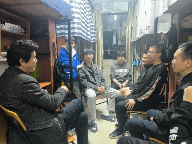 2023年4月6日晚,yl6776永利集团党委副书记张雄伟老师走访会展专业学生宿舍,慰问了解学生生活、学习状态。