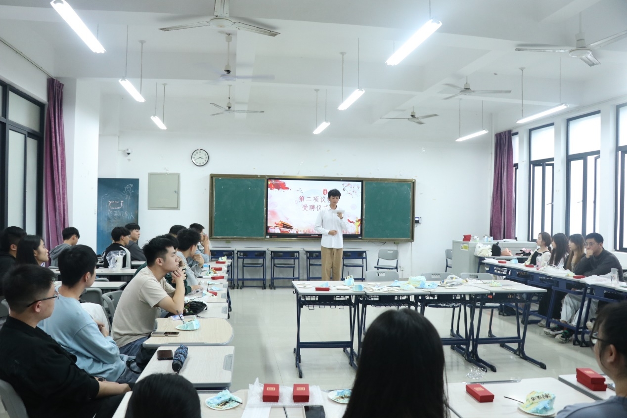 为进一步深化“再学习、再调研、再落实”活动和落实“第二课堂成绩单”制度,同时更好地传承我院学生干部的良好作风。11月6日下午,yl6776永利集团学习习近平总书记在中华人民共和国恢复联合国合法席位50周年纪念会议上的重要讲话精神暨2020-2021学年学生干部受聘仪式于诚信楼302举办。院团委书记胡瑞安以及院团委学生会自律会部分学生代表出席了本场会议。 会议开始前,学院为各位学生干部分发了“名牌”蛋糕及纪念品。本次会议共有三项议程,首先,与会人员集中学习习近平总书记在中华人民共和国恢复联合国合法席位50周年纪念会议上的重要讲话精神。其次,举办受聘仪式。学生干部手中的拿到的每一份聘书,都是对学生干部过去一年工作的极大认可。最后,胡瑞安老师代表院团委,感谢学生干部在过去一年中为学院作出的积极贡献,也祝新一届的学生干部能传承优良传统,再接再厉,让学院团委工作再上新台阶。 本次受聘仪式的成功举办,营造了积极育人氛围,展现了我院发挥仪式感教育在思想政治工作中的重要作用,也将通过学生干部认真学习态度、尽职尽责的奉献意识,为全面扎实开展好主题教育起到助推作用,更好促进全院学生学好专业知识、掌握实践技能、提升自身素质,进一步推动我院的学风与院风建设,增强全院学生的荣誉感、获得感。