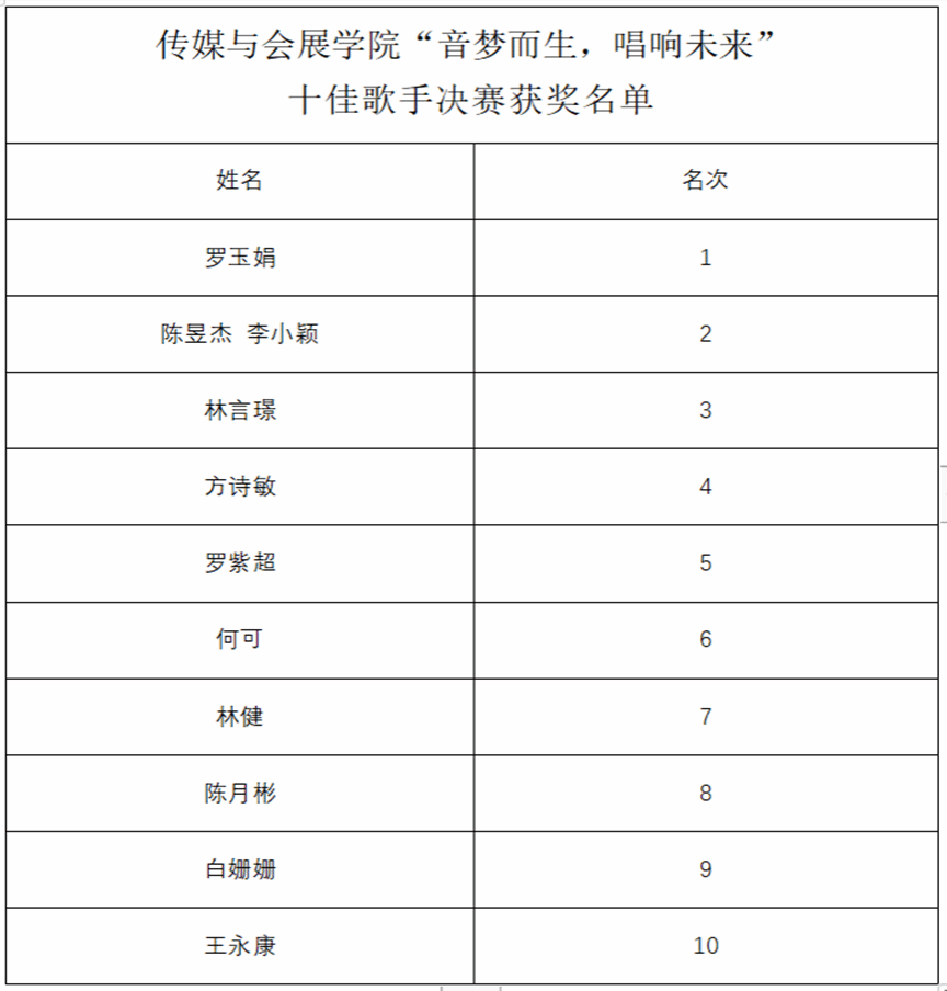 下面公示本次yl6776永利集团“音梦而生,唱响未来”十佳歌手大赛获奖名单。