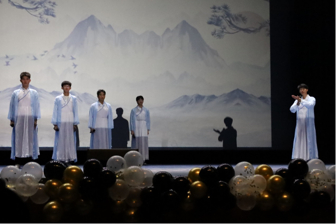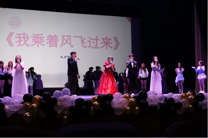 合唱《我乘着风飞过来》昭示着晚会的结束,他们用深情饱满的声音唱出对未来的向往,掌声此起彼伏,师生喝彩连连。
