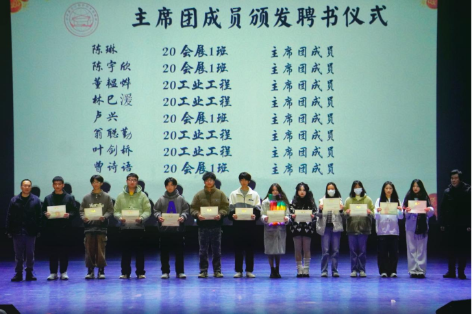 新生助导与主席团成员上台领取聘书