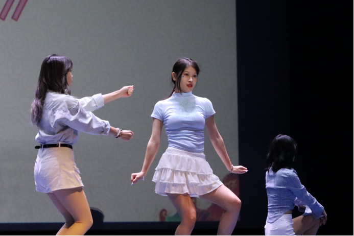 观众的应援棒挥舞着,舞台灯光交错,光影与此起彼伏的欢呼声中,是院舞队舞动的身影,一曲《drama》点燃全场。