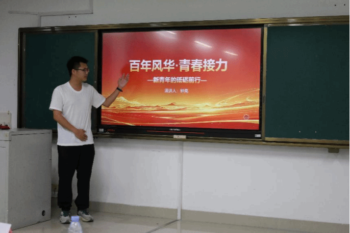 第五组钟亮同学为大家带来微演讲《百年风华 青春接力一一新青年的砥砺前行》展现百年来,青年推动祖国的翻天覆地的变化。