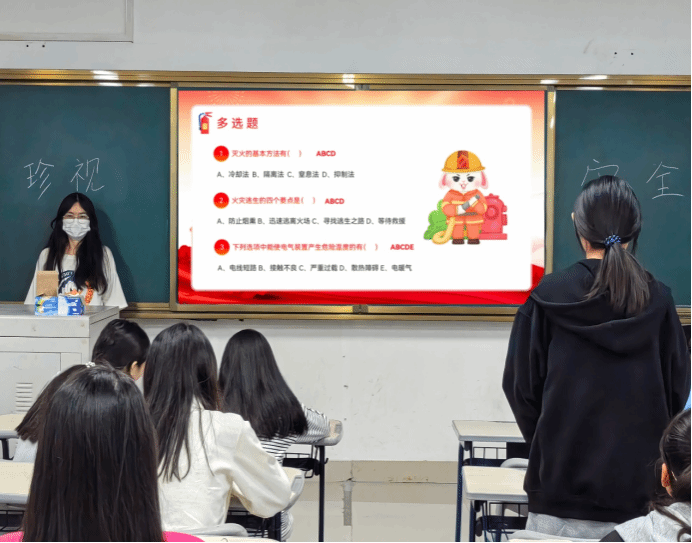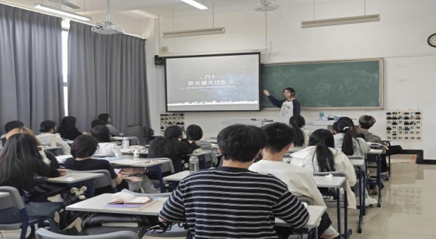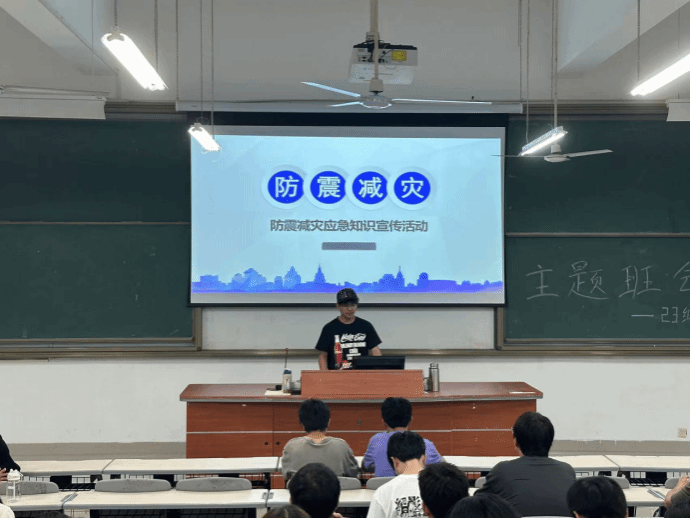 本次班会上,班委向大家先普及了防灾减灾的重要性,详细介绍了地震、火灾、洪水等常见自然灾害的预防和应急逃生常识。并且着重讲解了火灾的成因、预防措施、疏散逃生技巧以及消防器材的使用方法,使同学们对消防安全有了更加全面和深入的了解。最后,引导同学们作为新时代的青年学生,要始终坚持人民至上、生命至上的原则,在提高自身的安全防护意识和能力下,为保障社会的和谐稳定贡献自己的力量。