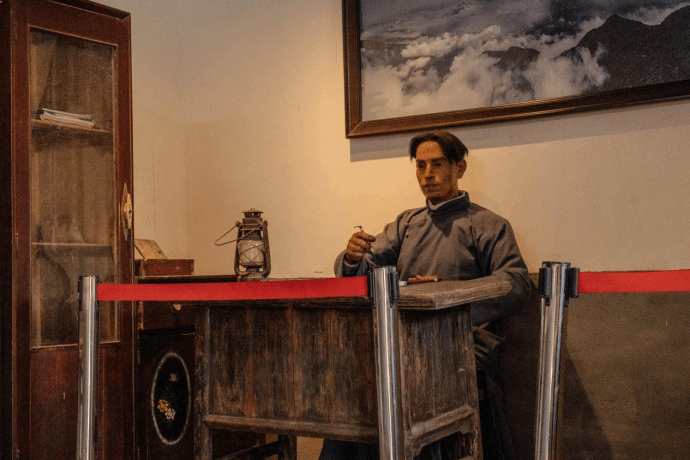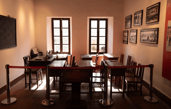 阳光透窗洒落,映照在精心复原的历史场景中,仿佛将时光拉回到那段激情燃烧的岁月。钟楼内,陈国柱先生的讲台赫然在目,简单而坚实,周围墙壁上挂着历史照片与壁画,生动再现了他与有志青年并肩作战的感人瞬间。小型展览区中的遗物、手稿、信件等珍贵文物,无声诉说着先贤的奋斗历程。队员们驻足凝望,耳边似乎回响着历史的低语,心中激荡着对革命精神的无限敬仰。