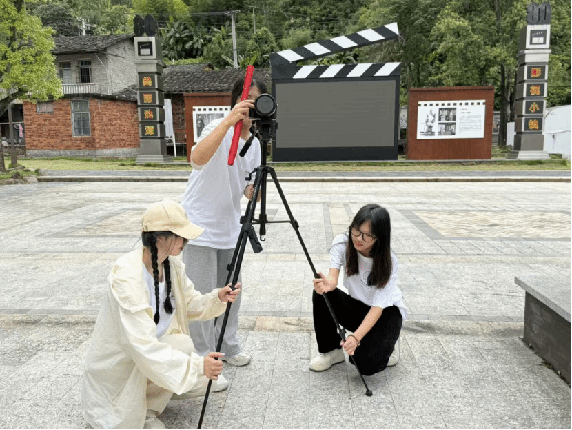 在社会实践方面,团队成员走进景区等地,开展文旅宣传活动。以“80年代影视小镇”为主要拍摄地点,拍摄相关视频,视频与以往不同的种草视频不同,视频以当福商学子穿越到80年代在池潭村开展一系列活动为主线,侧面向观众展示了池潭村“80年代影视小镇”的风景。在拍摄过程,福商学子遇到了短剧拍摄团队,现场观摩到了专业的拍摄技巧。此外,团队还与当地文旅部门、企业进行座谈,结合实践调研结果,为文旅产业发展建言献策。
