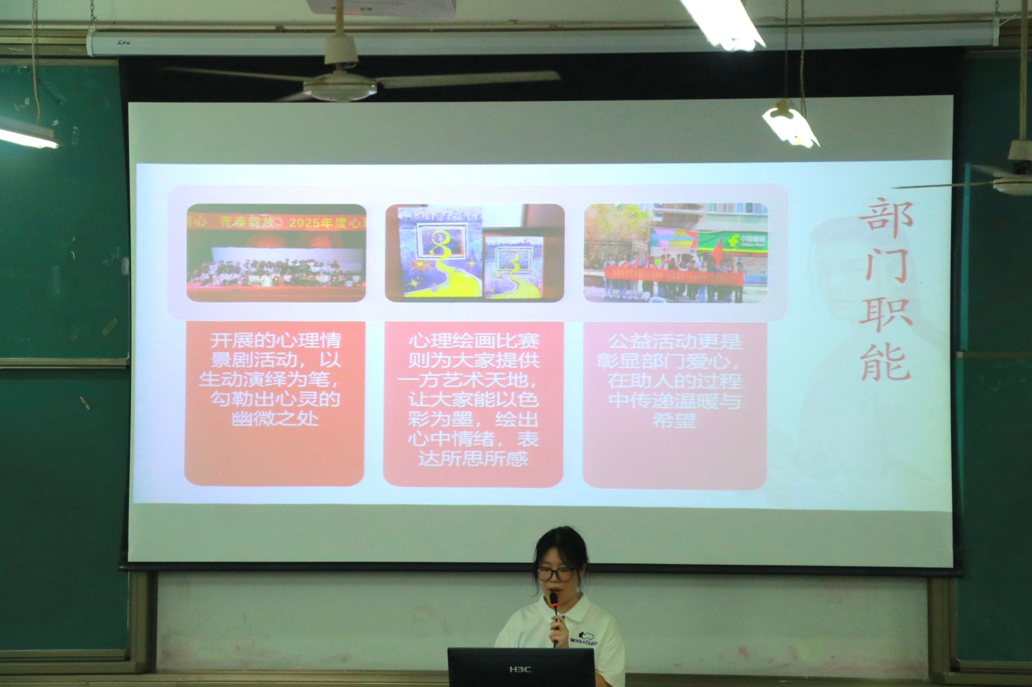 没有枯燥宣讲!各部门代表带着“压箱底”的图文“干货”轮番登场:现场实拍超吸睛、成果海报超亮眼、策划手稿超有料,让新生秒懂各部门亮点,掌声、欢呼声直接把氛围拉满,为后续纳新攒足人气。