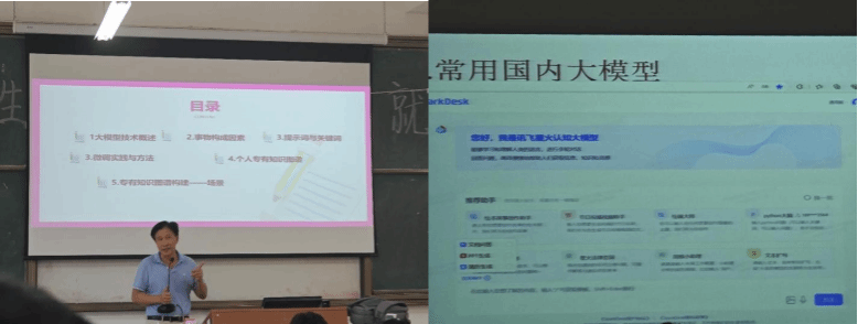 魏仁兴教授详细介绍了大模型技术与其的应用方法,解释了大模型技术的内涵,介绍了国内大模型的应用实例,如讯飞星火认知大模型、文心一言和通义千问等。讲座中以论文写作为例,展示如何利用提示词进行提问,阐述了直接提示词、段落提示词和互提示词的区别和用法;以通义万象为例,说明了如何利用多模态生成模型对研究结果进行场景构建。讲座结束后,同学们对大模型技术有了更深入的理解,纷纷表示受益匪浅。