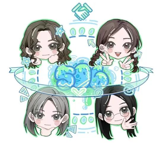 本宿舍logo是围绕宿舍四个女孩创作的,四个人像分别对应着不同特点的女孩。基调色为蓝绿,象征着青春活力。最上方与中心的握手与爱心标识也代表着本宿舍的核心理念:友好与关怀。人像周围的小符号表明着对未来四年大学生活的期望,希望本宿舍能团结一致向共同的奋斗目标前进,进而向星星一样闪闪发光成为更好的自己!