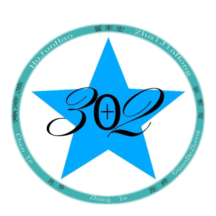 整体标志寓意302宿舍团结友爱,积进取,像五角星的五角一般缺一不可