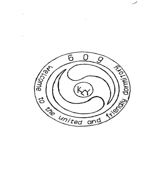 此舍标以简约风为主,把设计的元素简化到它的本质,化用中华文化中八卦图的太极元素,太极寓意为“互相转化,相对统一”,舍标中的“6”和“9”与太极中阴阳两级相似,寓意为609宿舍四人团结友爱,相互合作。“6”与“9”中间的圆圈图案,为宿舍四人姓氏首字母组合成,分别为“康”——K,“魏”——W,“罗——”L,“杨”——Y。最后,外圈的英文“welcome to the united and friendly dormitory”为“欢迎来到团结友爱的宿舍”。