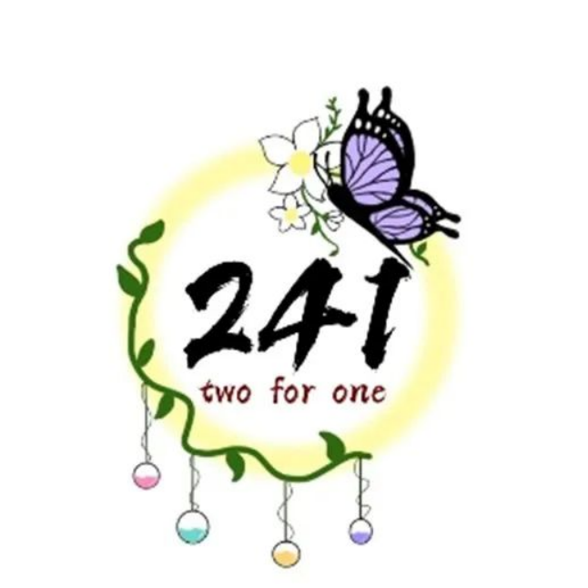 底下的四个瓶子分别为我们四人喜欢的颜色,也代表我们个人的美好愿望;紫色为梦幻,蝴蝶则来源于庄周梦蝶:意寓理想与现实虽不可混为一谈,但美好现实却可以靠对理想的奋斗去实现,就如同我们的大学生活;而two for one即为宿舍241的谐音,又代表两个不同级别的学生相遇在一间宿舍。