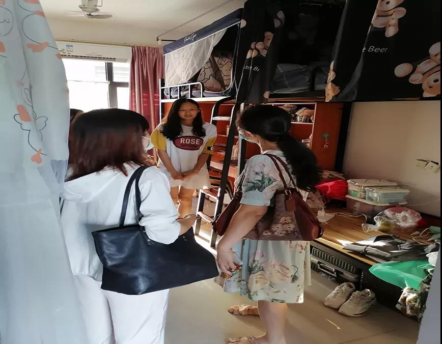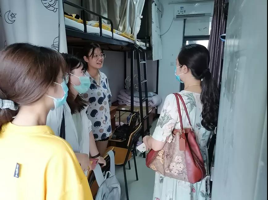 2021年9月14日16时,yl6776永利集团副院长邱志玲带领辅导员以及学生助导走访新生宿舍,亲切地向同学们询问了对线上教学的适应程度与网上教学的效果,并实地察看了学生反映的宿舍问题。对有相关疑问的同学,邱志玲副院长也十分关注她们所反映的问题,并对相关问题作出了解答。
