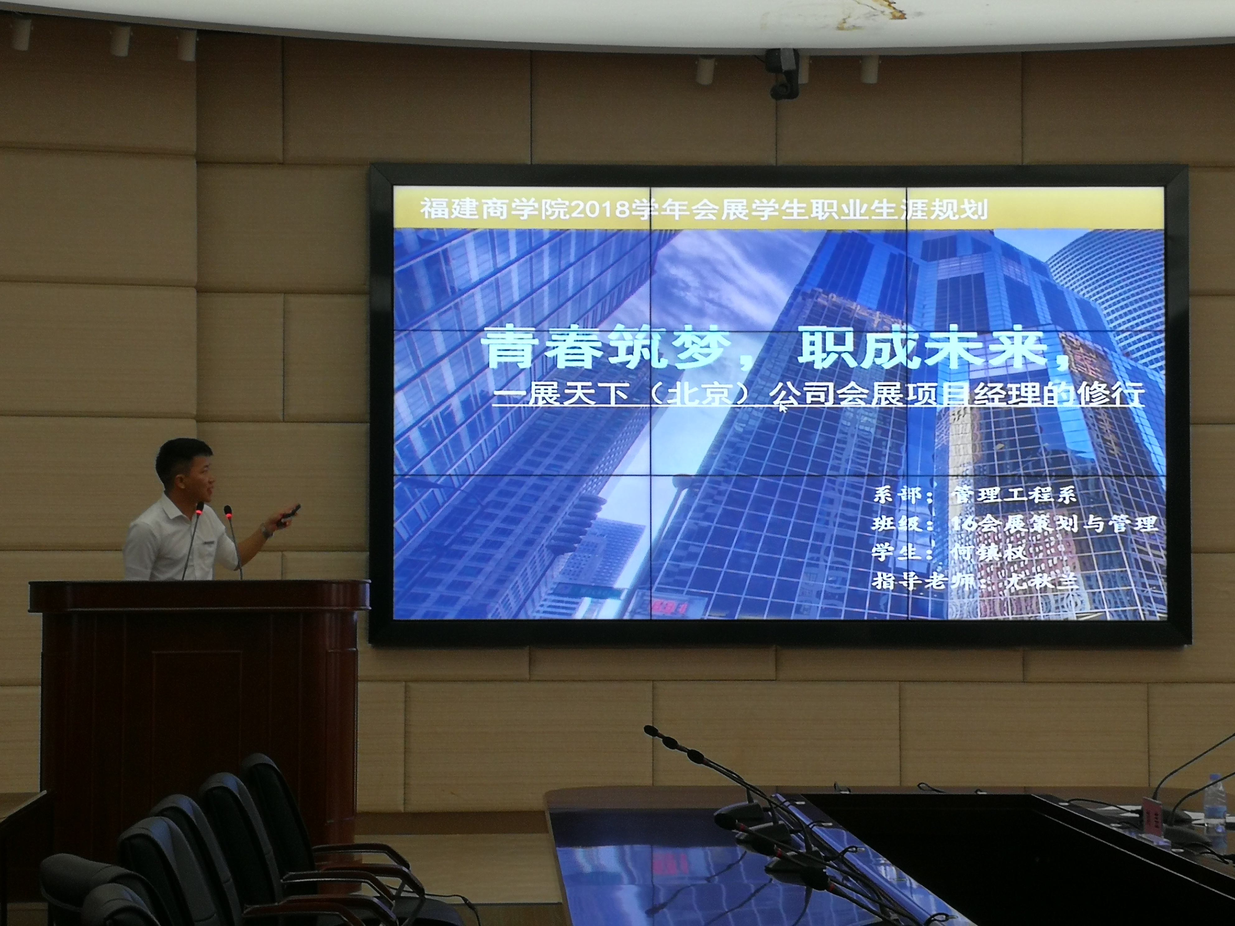 9月21日下午,我校2018年大学生职业生涯规划大赛决赛在连江校区圆满落幕。经过紧张激烈的角逐,由我系尤秋兰老师指导的何镇权同学作品《青春筑梦,职成未来之会展项目经理的修行》荣获一等奖。