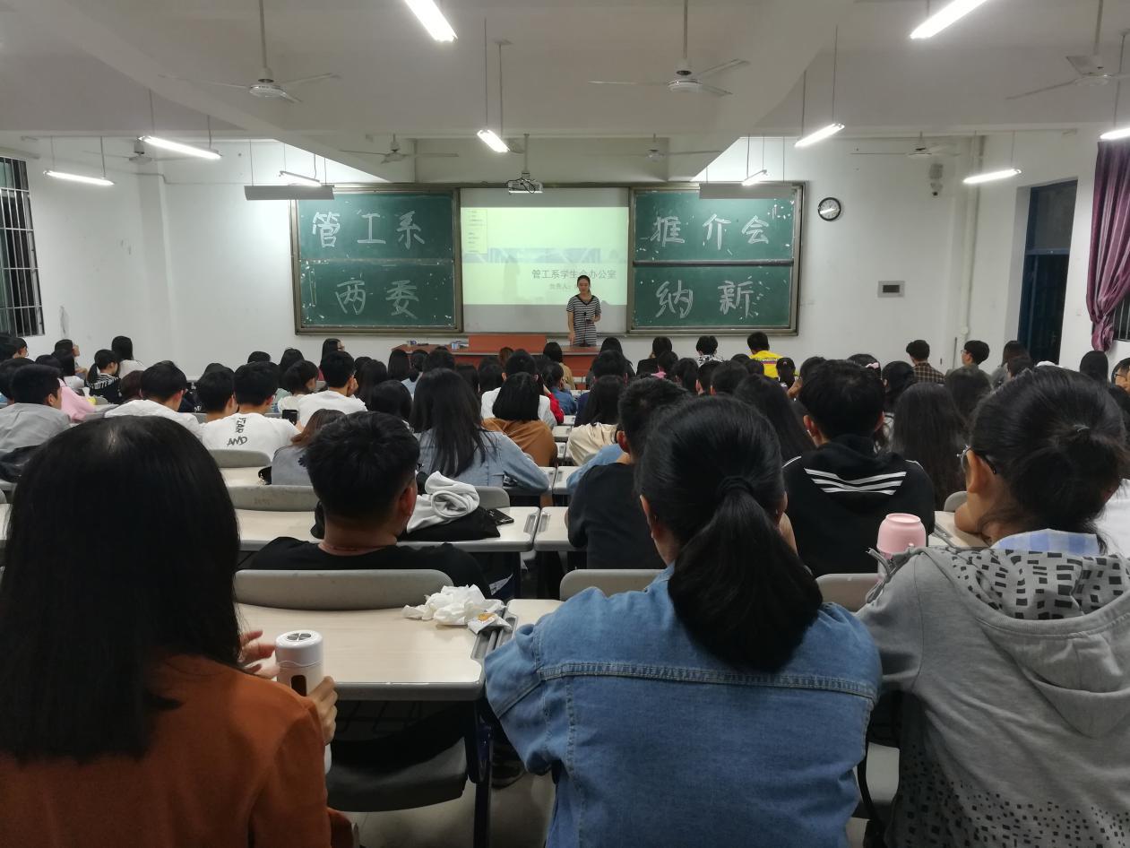 为了给管理工程系两委学生会注入新的活力,培养出一批品学兼优,能力突出的学生队伍干部。2017年10月27日晚七点整,在诚信楼中介一举办了我系两委学生会推介会。出席此次推介会的有2016级两委学生会主席团成员、各部门负责人以及我系2017级全体新生。