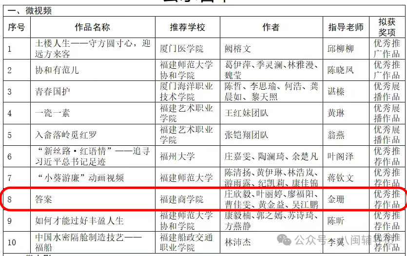 近日,根据《中共福建省委教育工委中共福建省委网信办关于举办第七届全省大学生网络文化节和全省高校网络教育优秀作品推选展示活动的通知》要求,我院两项作品入围。