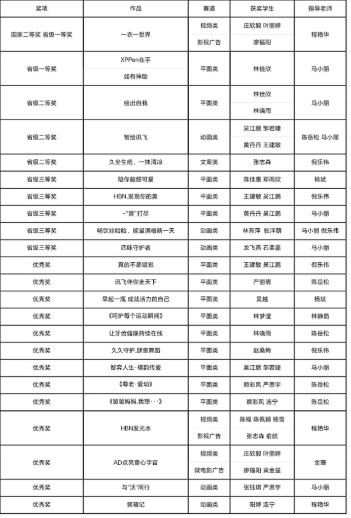 第十六届全国大学生广告艺术大赛是由教育部高等教育司主办,教育部高等学校新闻学学科教学指导委员会组织,中国传媒大学与中国高等教育学会广告教育专业委员会共同承办的国家级A类竞赛(以下简称“大广赛”)。在刚刚结束的“大广赛”中,我院推送作品荣获国家二等奖1项、省级一等奖2项、省级二等奖3项、省级三等奖5项、省级优秀奖13项的好成绩,让我们对以下师生表示热烈祝贺!
