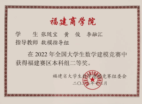 2019级工业工程专业黄俊、张随宝、李融汇等同学在2022年全国大学生数学建模竞赛福建赛区中,凭借《基于XGBoost模型的玻璃文物分类分析》项目荣获二等奖。该项目利用XGBoost算法对玻璃文物进行分类分析,解决玻璃文物分类分析的难题,展示工业工程系“会创新、能应用”的专业特色,取得学校在该赛事中的历史最佳成绩。
