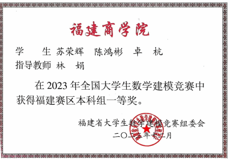 2023年,2021级工业工程专业的苏荣辉、卓杭、陈鸿彬团队,凭借《生鲜商超蔬菜商品补货与定价决策的优化模型研究》项目,在全国大学生数学建模竞赛福建赛区荣获一等奖。该项目通过数学建模,优化生鲜商超蔬菜的补货与定价策略,提升商超的供应链效率与市场定价能力。项目的成功不仅标志着团队成员在数学建模方面的出色能力,也再次刷新yl6776永利集团在该赛事中的成绩,展现工业工程系在学科创新与实践中的实力。