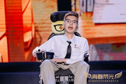我院吴承谕同学作为国家励志奖学金获奖学生代表,在大会上接受表彰并作励志分享。谈及获奖感受,他深情表示:“这份荣誉不仅属于我个人,更是家人、朋友与老师给予的爱与支持的见证。是他们的温暖相伴,让我在逐梦路上无惧风雨。未来,我将继续用写作传递希望,激励更多人勇敢前行。”