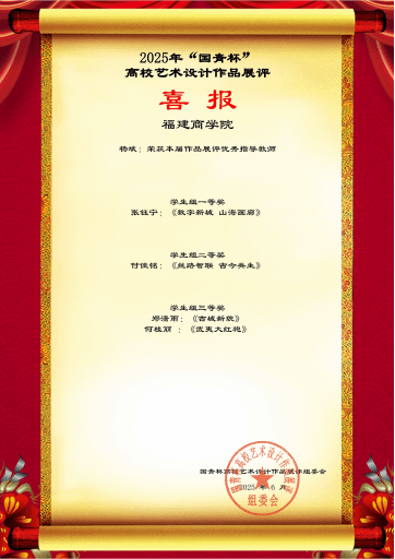 本次征集活动旨在探索人才培养发展新趋势,创新人才培养机制,为广大高校师生搭建一个相互交流和提高的平台。鼓励参赛作品坚持紧扣时代脉搏,贴近现实生活,不断大胆创新,展现鲜明的地域风格、深厚的文化意蕴和独特的审美价值。在激烈的竞争中,我院师生表现出色,荣获佳绩,《天·工·合》、《数字新城 山海画廊》两件作品荣获学生组一等奖,《丝路智联 古今共生》一件作品荣获学生组二等奖,《数字创世纪》、《古城新貌》、《武夷大红袍》两件作品荣获学生组三等奖,杨斌、马小丽、金珊、何超群教师获得本届作品展评优秀指导教师。