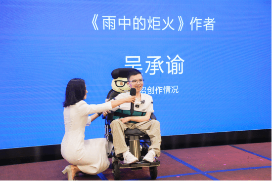 《雨中的炬火》的作者吴承谕,是我院应用心理学专业大三学生。他因罹患罕见病杜氏进行性肌营养不良症(DMD),肢体二级重度残疾,自11岁起便不得不与轮椅为伴,如今全身几乎无法活动。尽管身体受限,吴承谕却凭借手指尚存的微弱力量坚持书写,“用手指在手机屏幕上一笔一画画出来”,以文字改变命运、照亮他人。翻开他的履历,他用文字书写了奋进的人生诗篇:他是中国散文学会会员、福建省作家协会会员,曾获第十九届叶圣陶杯中学生新作文比赛最高奖“全国十佳小作家”奖,并获2021“福建励志先锋”、2024“中国大学生自强之星”等称号。